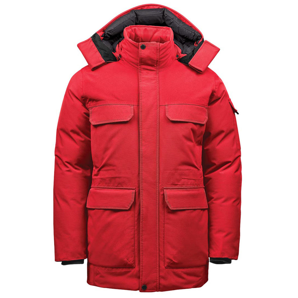 Stormtech Men's Red/Black Denali Parka with a custom logo offers extreme comfort in the extreme cold. Delivering protection from the elements whether trekking through the woods or commuting to work, this parka is ready to face the day. Multiple pockets, a hood, and a storm flap make this a must-have. Place your order today.Corresponding Women's Style: Stormtech Women's Red/Black Denali Parka
