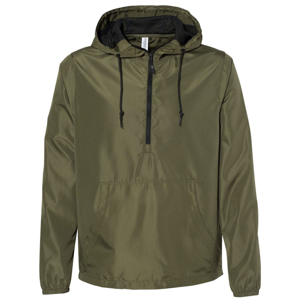 Added embroidery amplifies the Independent Trading Co. Unisex Army/Black Zipper Lightweight Windbreaker Pullover. Made of 100% polyester fabric with interior water resistant coating, this windbreaker is the choice for those who enjoy a good workout each day. Add a company logo to these windbreakers to promote a company and products at a trade show, event, or supply store. Your custom design will look great on one of the many color options with tearaway label, welt pockets, a hood, and scuba neck for the best protection against the wind and rain. Ideal as part of warm-up gear for an entire team, this windbreaker will not let you down in the athleisure apparel area.Highlights