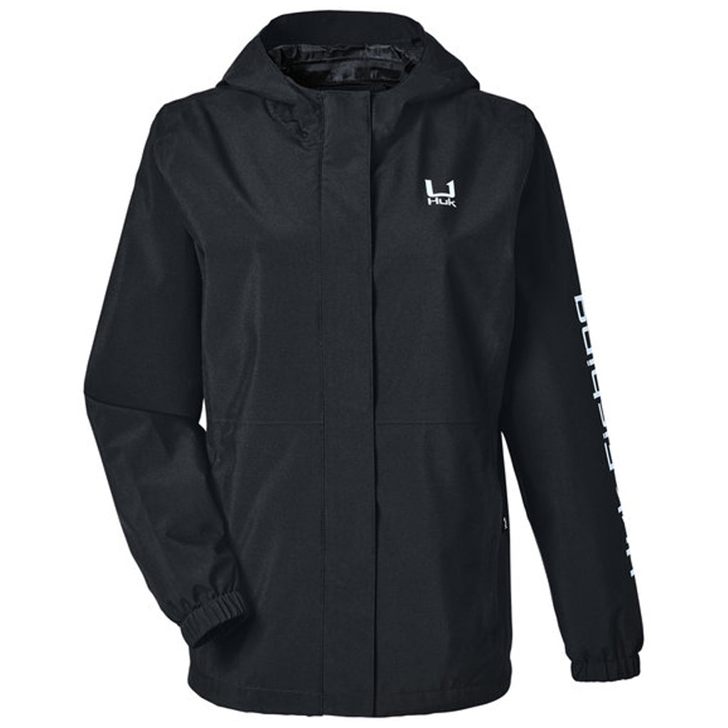 Enjoy a custom look with the HUK Women's Black Storm Rain Jacket. This stunning jacket is convenient and comfortable when the weather takes a turn. Perfect for a professional look for those working security, doing outdoor planning, or just enjoying the outdoors. A storm flap zipper and hand pockets add to the overall convenience.Corresponding Men's Style: HUK Men's Black Storm Rain Jacket