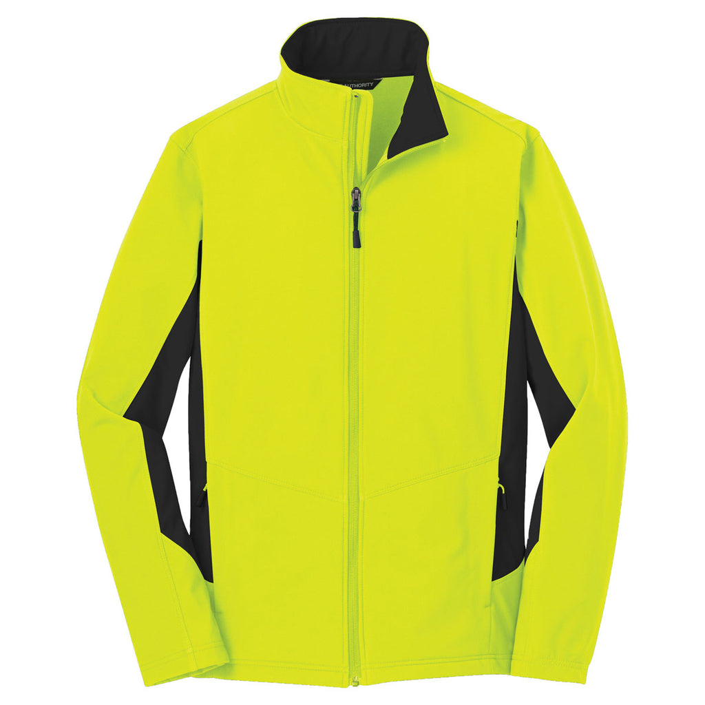 If there's any one item you can't be without in tough weather, it's a quality jacket. The idea behind the Port Authority Men's Safety Yellow/Black Core Colorblock Soft Shell Jacket is the same as many jackets: you need to find a way to separate your skin from the weather, or else you're not going to have a very pleasant time of it. And when you add your custom logo to this beautiful jacket, you create a unique piece of corporate apparel that anyone would love to wear"and, in the process, show off your own brand.Highlights