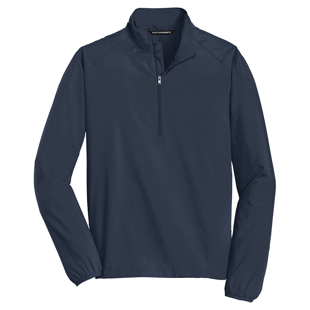 Your team of high achievers has exceeded performance goals for the year, and you want to thank them by presenting a gift that keeps on giving. The Port Authority Men's Dress Blue Navy Zephyr 1/2-Zip Pullover makes the ideal corporate gift for both employees and loyal customers. Wind and water resistant properties keep you comfortable in all types of weather. The 100% polyester shell remains intact for years to give you ultimate durability. Contemporary stylish details complement the glossy appearance of the 1/2-zip pullover. Attach your company logo to the pullover for creating a cost effective way to market your company.Highlights