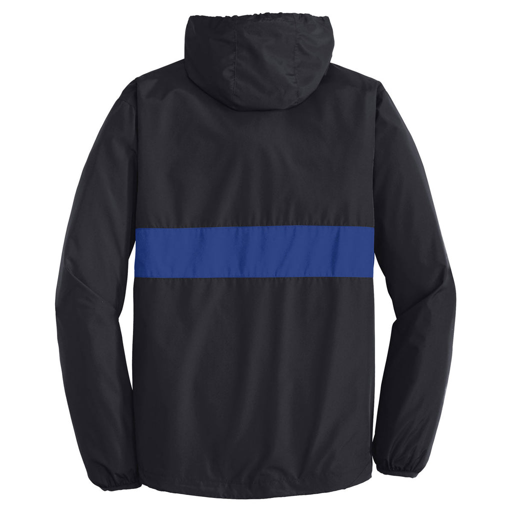 As a jacket for all seasons, the Sport-Tek Men's Black/True Royal Zipped Pocket Anorak includes a large zippered pocket that stores your valuables. It is frustrating to hear the smartphone ring and not be able to retrieve it in time to take phone calls. The large zippered pocket runs across the front of the jacket to give you instant access to electronic devices. Sport-Tek goes beyond standard comfort features by adding a chin guard and three-panel hood. One-hundred percent polyester woven sleeve linings keep your arms warm. Optimize the marketing potential of the anorak by attaching your company logo to the large embroidery area.Highlights