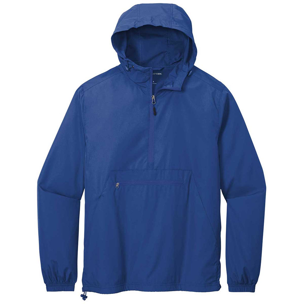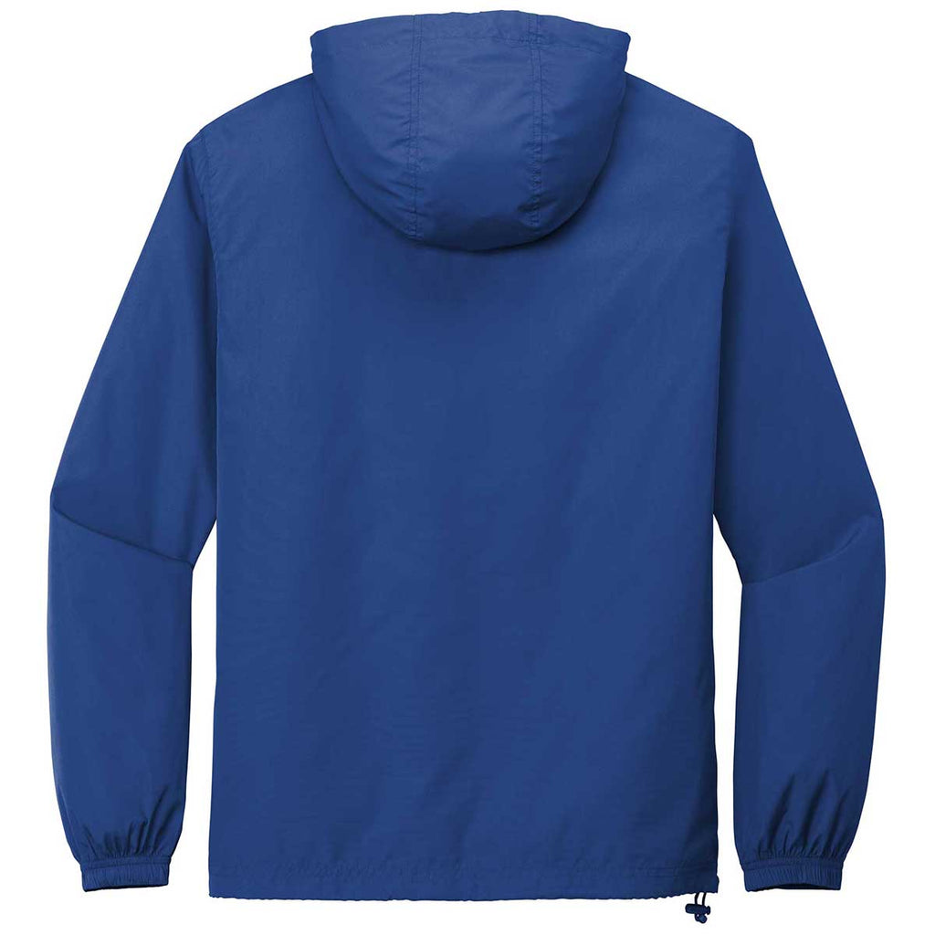 Stay protected in a custom embroidered Sport-Tek Men's True Royal Packable Anorak. This weather fighting essential is great when Mother Nature is unpredictable. Easily folds into its own front pocket so it can be stored in the car or a duffle as you head out to face the day. Made of 100% polyester on the shell, this jacket can carry your company logo with pride, making it an ideal employee gift. The three panel hood with drawstring and toggles mean you are prepared if the weather turns while participating in or watching a team event. A front pouch pocket and the pocket in which the jacket folds into keeps items safe and secure as you enjoy a commute to work or a day hanging with friends.Highlights