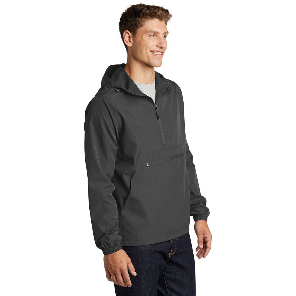 Stay protected in a custom embroidered Sport-Tek Men's Graphite Grey Packable Anorak. This weather fighting essential is great when Mother Nature is unpredictable. Easily folds into its own front pocket so it can be stored in the car or a duffle as you head out to face the day. Made of 100% polyester on the shell, this jacket can carry your company logo with pride, making it an ideal employee gift. The three panel hood with drawstring and toggles mean you are prepared if the weather turns while participating in or watching a team event. A front pouch pocket and the pocket in which the jacket folds into keeps items safe and secure as you enjoy a commute to work or a day hanging with friends.Highlights