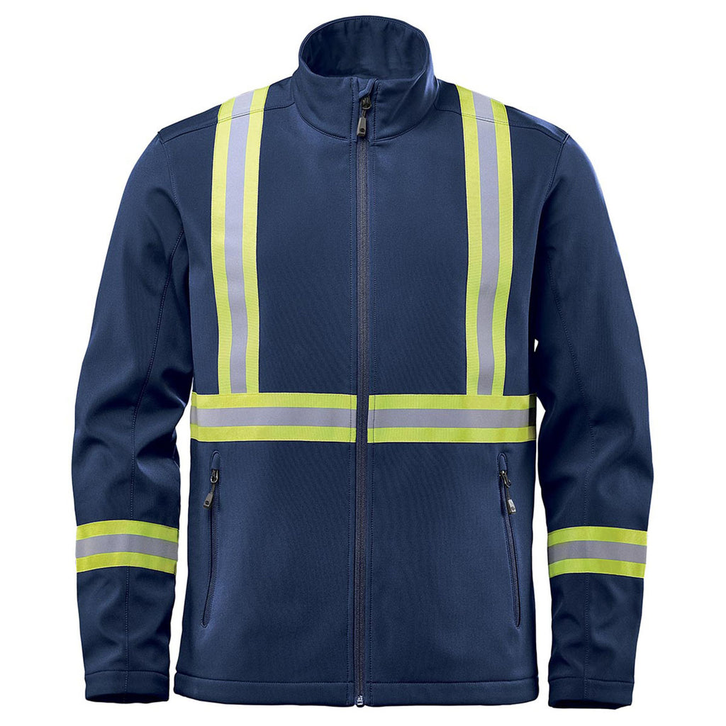 Outfitting your team in a Stormtech Men's Navy Orbiter Reflective Softshell that includes your company's custom logo or design will ensure they're always highly visible even in dark or treacherous conditions. high performance softshell fabric makes it a great mid-weight piece for when temperature starts to cool.