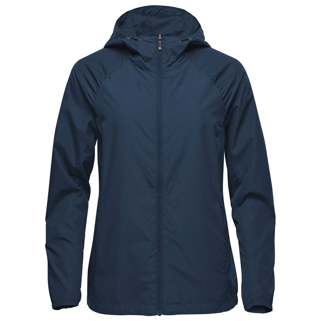 A custom embroidery on the Stormtech Women's Navy Pacifica Jacket will create a custom gift that others will truly appreciate. This full front zip jacket is urban inspired and outdoor ready. The ultra-lightweight wind jacket provides a sleek, somewhat fitted silhouette with back mesh lined vent to keep you comfortable. Articulated elbows allow for freedom of movement and an attached hood keeps you protected during pop-up showers. The beautiful jacket has a simplistic design, but is perfect for a range of situations. Add a company logo to use as part of employee uniforms for those who have to work outdoors, but need to be able to move freely. Place an order today for these versatile jackets.Highlights
