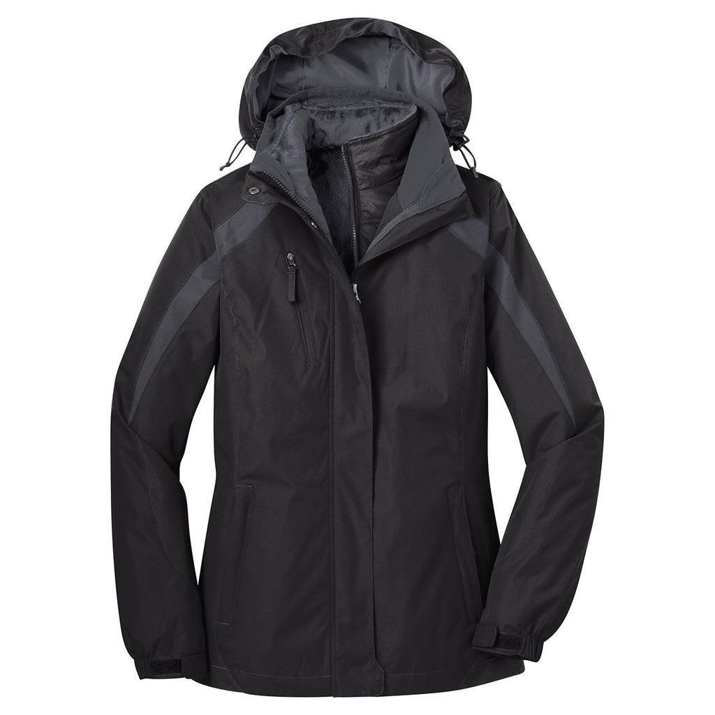 Port Authority Women's Black/Black/Magnet Grey Colorblock 3-in-1 Jacket