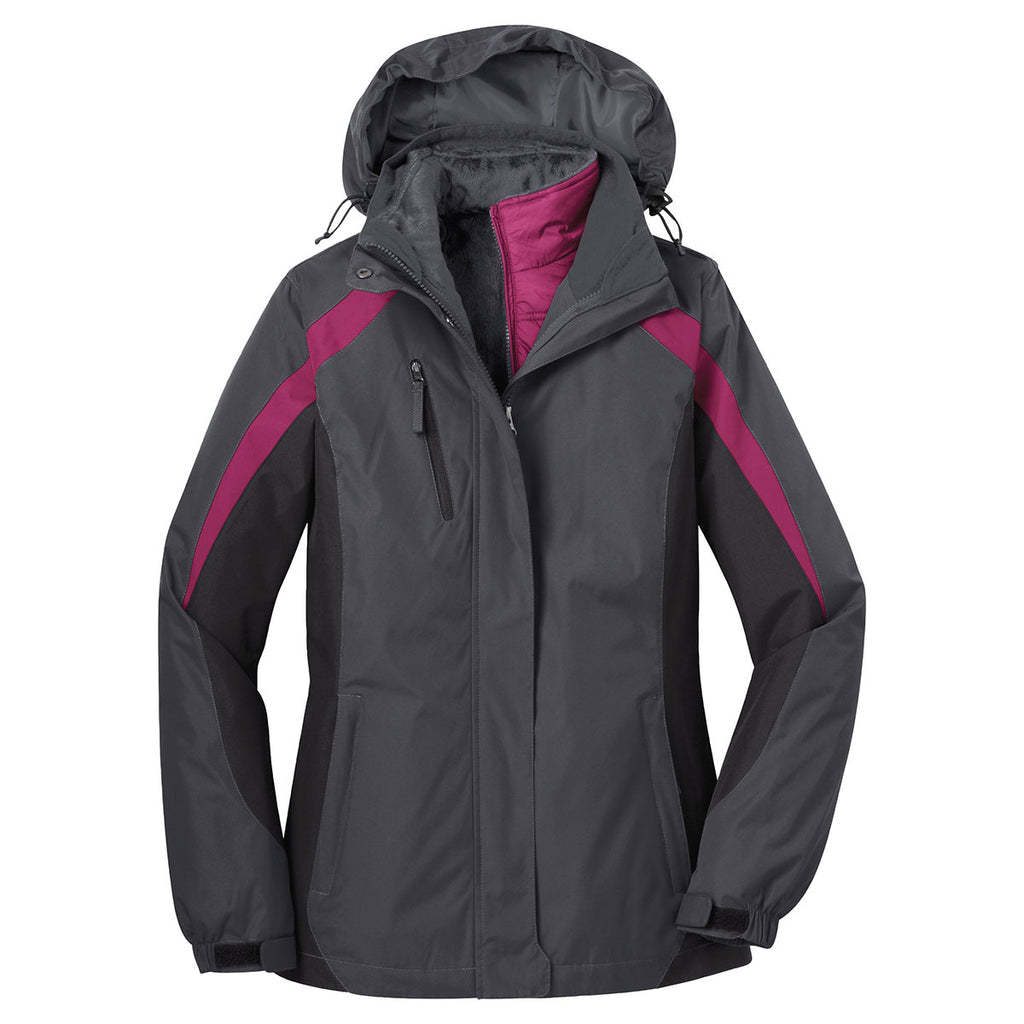 Port Authority Women's Magnet Grey/Black/Very Berry Colorblock 3-in-1 Jacket