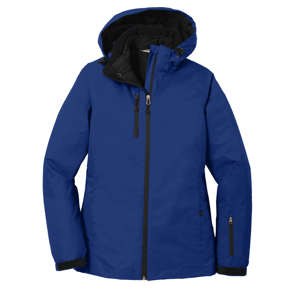 Try ignoring the weather outside one day and seeing how well you dress. Not such a great idea, was it? That's because the weather is by definition unpredictable; if you're going to want to be prepared, you're going to have to wear the jackets that separate you from mother nature. This Port Authority Women's Night Sky Blue/Black Vortex Waterproof 3-in-1 Jacket is just what you need. Simply add your corporate logo to one of these pieces to make it a great embroidered piece of business apparel.Corresponding Men's Style: Port Authority Men's Night Sky Blue/Black Vortex Waterproof 3-in-1 Jacket