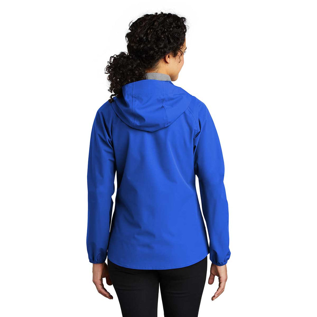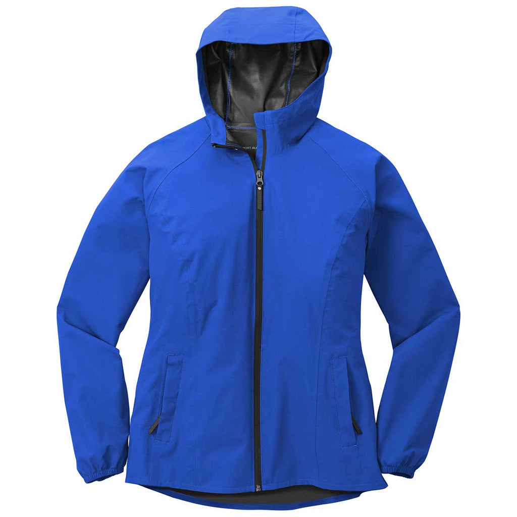 Go play in the rain with a custom embroidered Port Authority Women's True Royal Essential Rain Jacket. Perfect as a company uniform for those who have to brave the great outdoors in less than ideal weather, this year round must have is fully seam sealed 8K/5K waterproof. The breathable 2.5 layer jacket with DWR finish has a 100% polyester shell with waterproof center zipper, interior storm flap, chin guard, and front zippered pockets. The elastic cuffs keep clothing protected as you enjoy outdoor team events or a simple walk to the office. Add your company logo so employees will be recognizable or use these as end of the year gifts.Corresponding Men's Style:Port Authority Men's True Royal Essential Rain Jacket