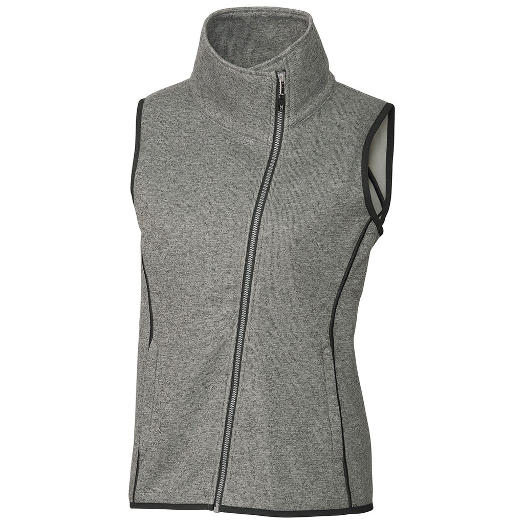 The Cutter & Buck Women's Polished Heather Mainsail Vest offers a comfortable vest where style is readily apparent. When you add your company logo to the vest, you turn this stylish apparel item into an advertising item that everyone will want to wear. The women's vest is available in a variety of classic colors and you're sure to find quite a few options that look great with your company logo. Features of this women's vest include a 100% polyester material, tonal top stitching, brushed fleece interior, asymmetrical full zip front style, front pockets with zip, and CB logo on the back. Purchase this item in bulk and hand it out as corporate apparel gifts to everyone!Corresponding Men's Style:Cutter & Buck Men's Polished Heather Mainsail Vest