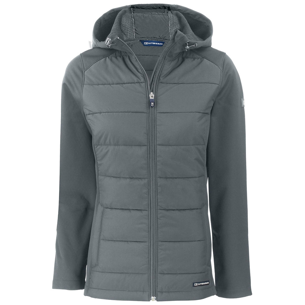 Cutter & Buck Women's Elemental Grey Evoke Hybrid Eco Softshell Recycled Full Zip Hooded Jacket