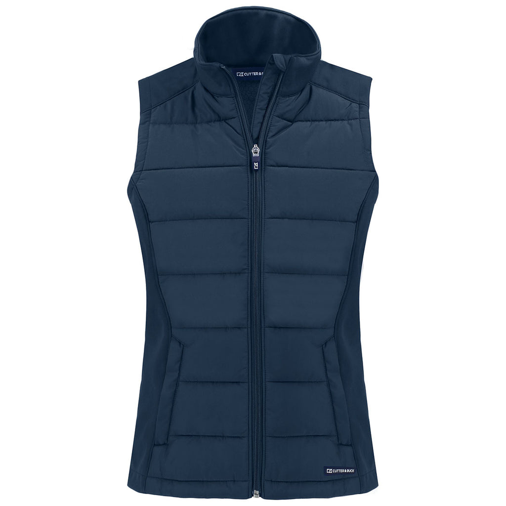 Cutter & Buck Women's Navy Blue Evoke Hybrid Eco Softshell Recycled Full Zip Vest