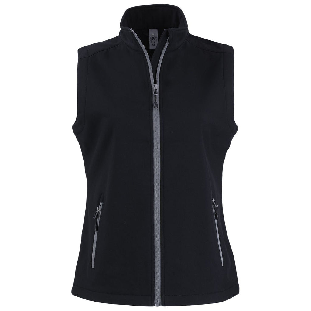 Clique Women's Black/Pure Slate Tempo Stretch Full Zip Softshell Vest
