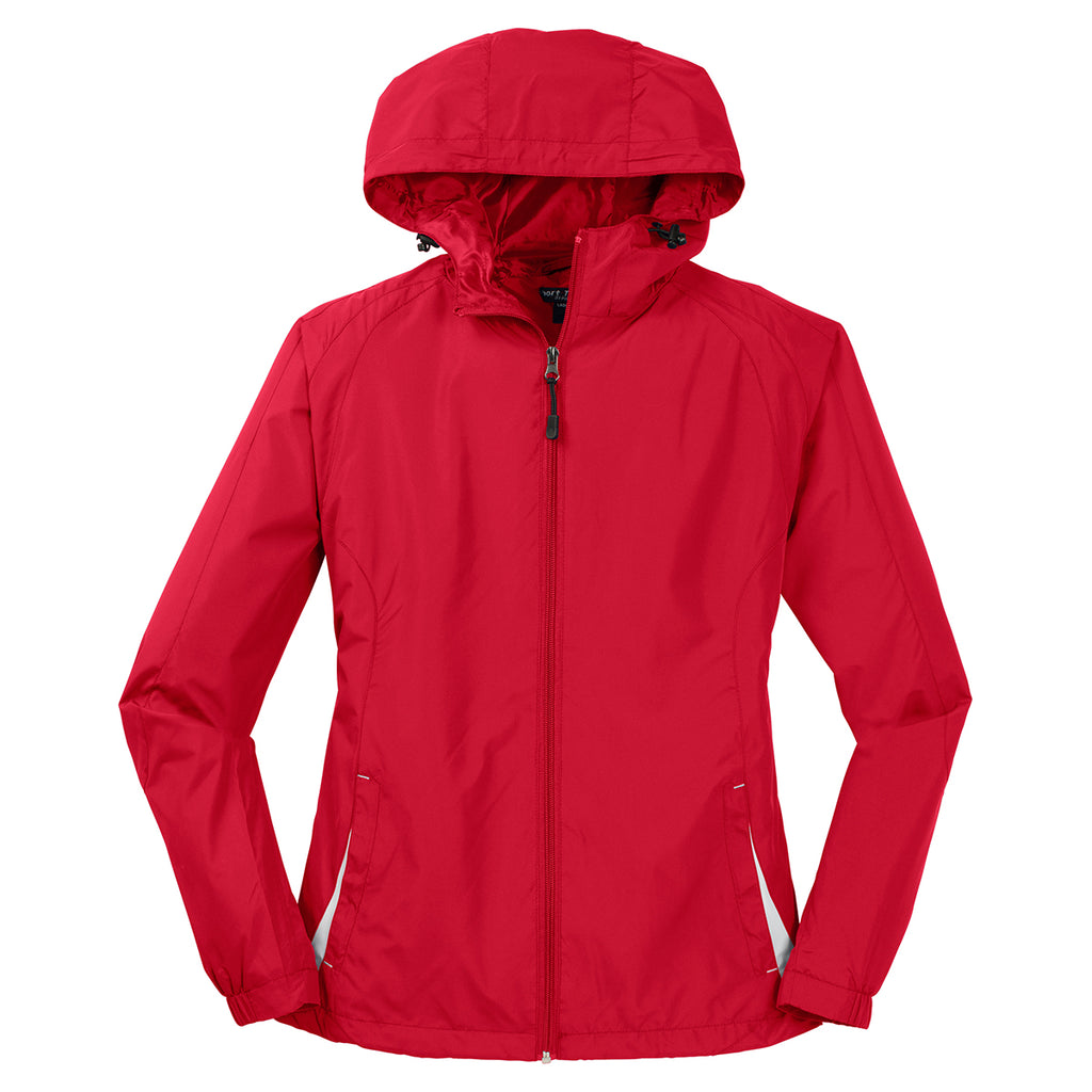 Sport-Tek Women's True Red/White Colorblock Hooded Raglan Jacket