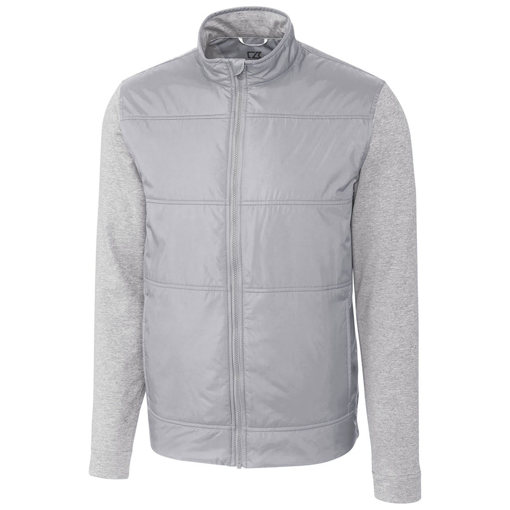 The Cutter & Buck Men's Polished DryTec Stealth Full-Zip features a mix of a polyester body with a padded central area. The stitch lines are designed perfectly for adding a unique touch without distracting from your custom logo. The hem and cuff offer spandex band features for a better fit. The simple color options make the perfect canvas for your custom branding. The full-length zipper lets the wearer adjust the surface with a good fit all around. This DryTec piece is ideal for fall athletic events thanks to its lightweight body and insulating surface that keeps wind from being a hassle.Corresponding Women's Style:Cutter & Buck Women's Polished DryTec Stealth Full-Zip