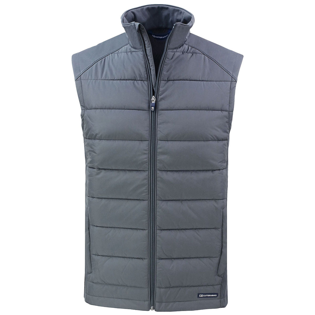Cutter & Buck Men's Elemental Grey Evoke Hybrid Eco Softshell Recycled Full Zip Vest