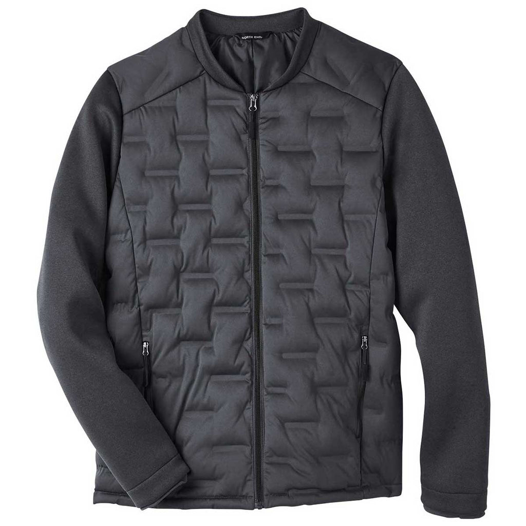 Express yourself in a custom embroidered North End Men's Carbon/Black Heather/Black Pioneer Hybrid Bomber Jacket. This jacket does it all with your company logo proudly displayed. Water resistant, wind resistant, and layered for warmth, this bomber jacket is great for those chilly mornings as you head to work or simply running errands throughout the day. Attend team events in style and comfort in the active fit bomber with four way stretch, thumbholes, and even audio port access through an inside pocket. Look great and stay entertained with this jacket and a corporate logo to show off. Order several to give as end of the year gifts that will actually be enjoyed.Corresponding Women's Style: North End Women's Carbon/Black Heather/Black Pioneer Hybrid Bomber Jacket