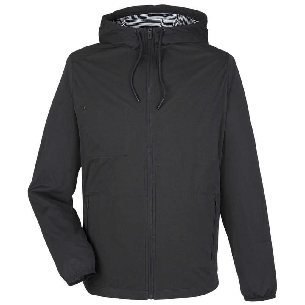 Design a corporate logo for the North End Men's Black Heather Network Lightweight Jacket to give as employee wear or as gifts to those important in the company. The lightweight jacket is breathable and waterproof to a 3,000 mm rating. Perfect for working or playing outdoors while keeping yourself and your clothing protected.Highlights
