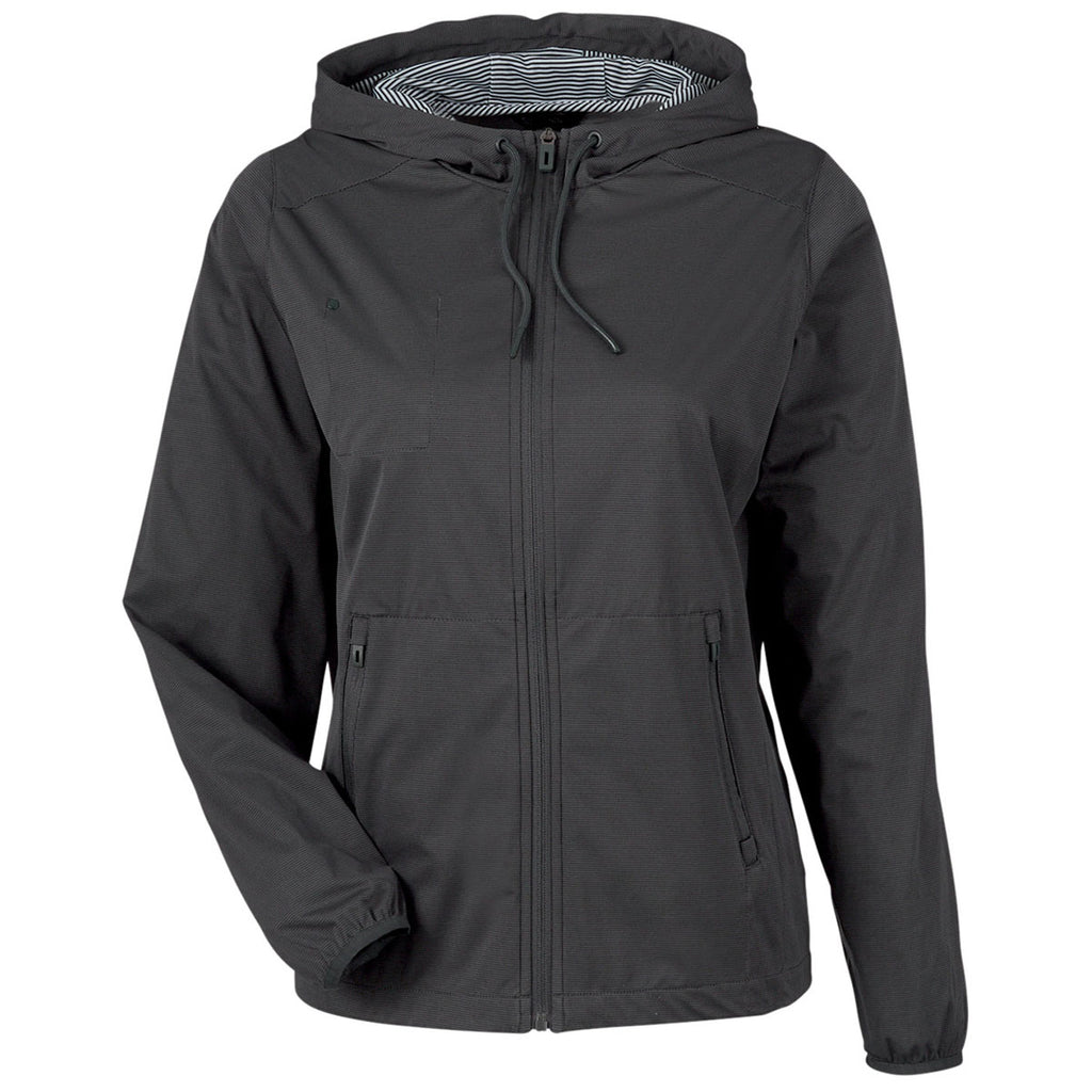 North End Women's Carbon Heather Network Lightweight Jacket with corporate embroidery is a fun and fashionable way to give an employee gift or create outerwear for those who need it. The breathable, lightweight design will keep you dry and protected when sudden Spring showers hit. Place an order right away before these sell out.Highlights