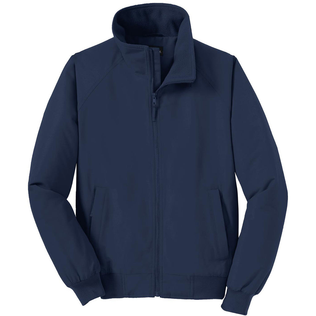 Behold the power of polyester, the ultimate fabric for weather protection: the Port Authority Men's True Navy Charger Jacket features a 100% Taslan shell, a 100% polyester fleece body lining, and 100% polyester heavyweight sleeves. The result? Ridiculous protection from a water-resistant shell and plenty of warm insulation to keep you feeling weather-appropriate even in the dog days of winter. There's more here than just the fabric, though, including front zippered pockets and an interior pocket for subtle easy-access to all your essentials. But there's one more essential missing if you want to turn this into a uniform: your company logo embroidered on the front.Highlights