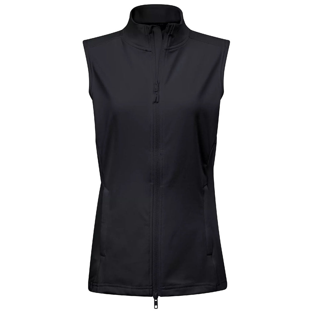 The Levelwear Women's Black Resort Vest adds a custom layer of comfort to any professional outfit. With a soft brushed interior and flattering seams, it's perfect for transitional weather or office settings. Whether you're dressing for a client meeting or a casual Friday, this vest combines style, warmth, and easy branding.This product cannot ship outside of the United States.
