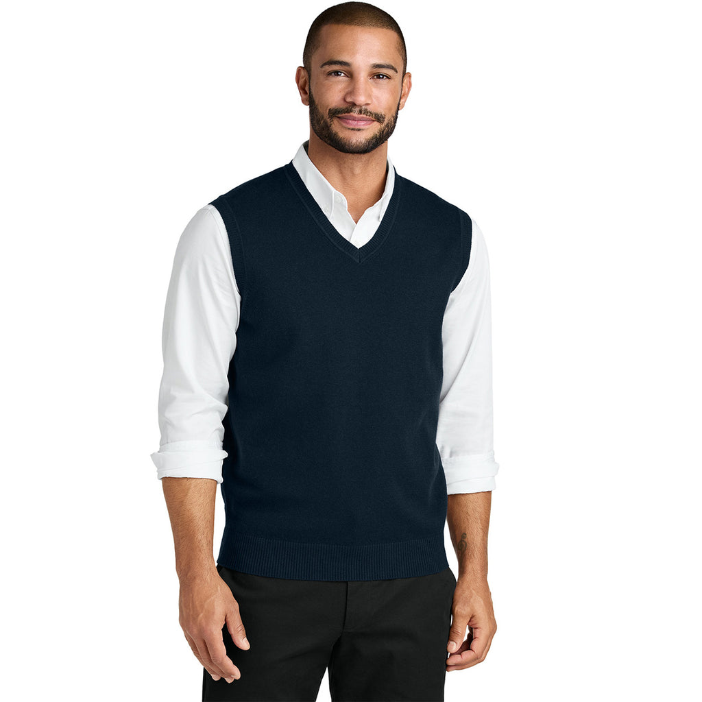 Be approachable in an embroidered Port Authority Men's River Blue Navy Easy Care Sweater Vest. Your custom logo will pop on the beautiful tri-blend sweater that can be easily layered for a complete look. The sleek sweater vest will draw people to you. Perfect for work in an office, to enjoy at home, or a special event.Highlights