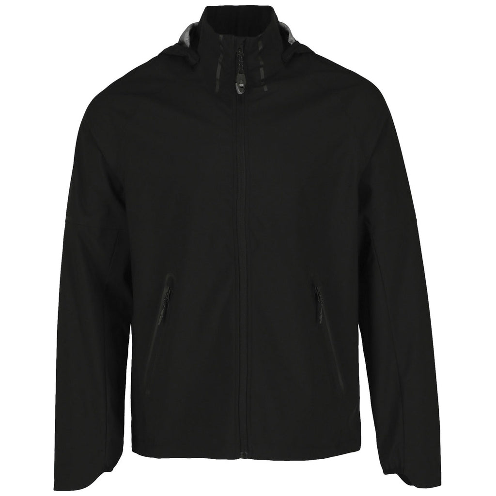 Elevate your look with a custom Elevate Men's Black Oracle Softshell Jacket, the jacket that can be worn anywhere. This gorgeous jacket is made of 100% polyester bonded to a polyester graphic pattern knit that is waterproof and breathable. The lightweight construction makes this ideal for hiking, biking, or commuting to work. A graphic camo pattern interior adds a bit of extra style with an interior zippered pocket with key hook. Add a company logo to use as part of employee apparel or gifts for any occasion. The snap off hood even keeps you dry if the weather takes a turn for the worse.