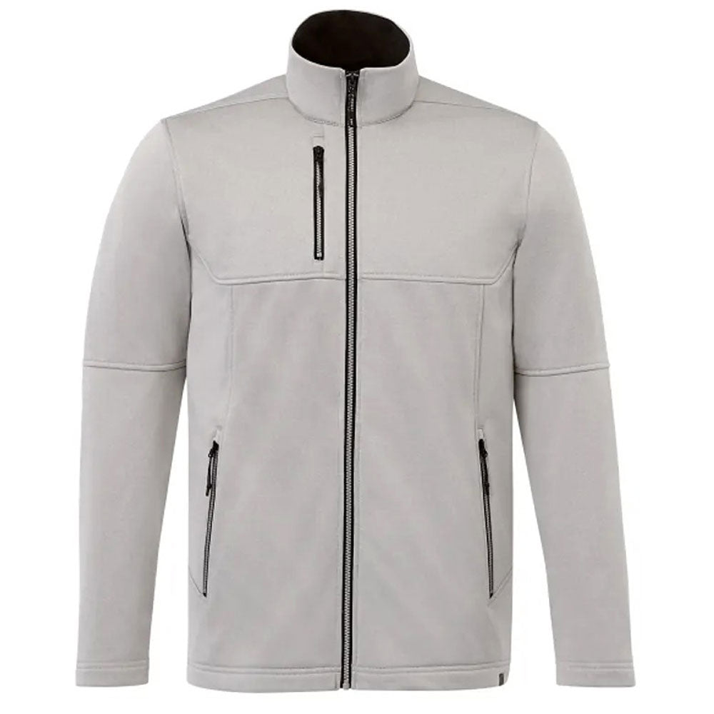 Elevate Men's Silver Heather Joris Eco Softshell Jacket with custom embroidery looks out for the wearer and the planet as it is created from recycled polyester and has a no contact keychain to keep you from touching buttons and keypads. The breathable, lightweight jacket is great for any weather and keeps valuables safe in zippered pockets. Place an order today.Corresponding Women's Style: Elevate Women's Silver Heather Joris Eco Softshell Jacket