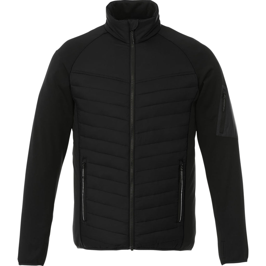 Sometimes, an outfit doesn't quite come together until that one missing element hits: in this case, the Elevate Men's Black/Black Banff Hybrid Insulated Jacket you see here. Not only is it warm enough to handle those chilly days and breathable enough to handle just about everything else, but its detailed seams really add durability and strength. If you want a great way to represent your brand with pride, then consider adding your corporate logo to this jacket. Or add a team logo for your league. Or a business logo for marketing. No matter what your goal, nothing helps you pull it off quite like a quality jacket.Corresponding Women's Style: Elevate Women's Black Banff Hybrid Insulated Jacket