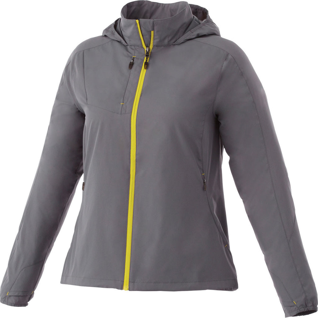 You want to head outdoors, but the forecast isn't entirely agreeable. You want the convenience of a T-shirt, but the comfort and style of something a little more sophisticated. The solution: this Elevate Women's Steel Grey Flint Lightweight Jacket. Not only does it function as a fantastic exterior piece against the cooler weather, but it will help keep you feeling comfortable and cozy even if you're just wearing it around the house. Add your custom logo to this piece and you'll be able to fashion it into a branding item for events, promotions, gifts, and more. That is, if you don't want to keep them all to yourself.Corresponding Men's Style: Elevate Men's Steel Grey Flint Lightweight Jacket