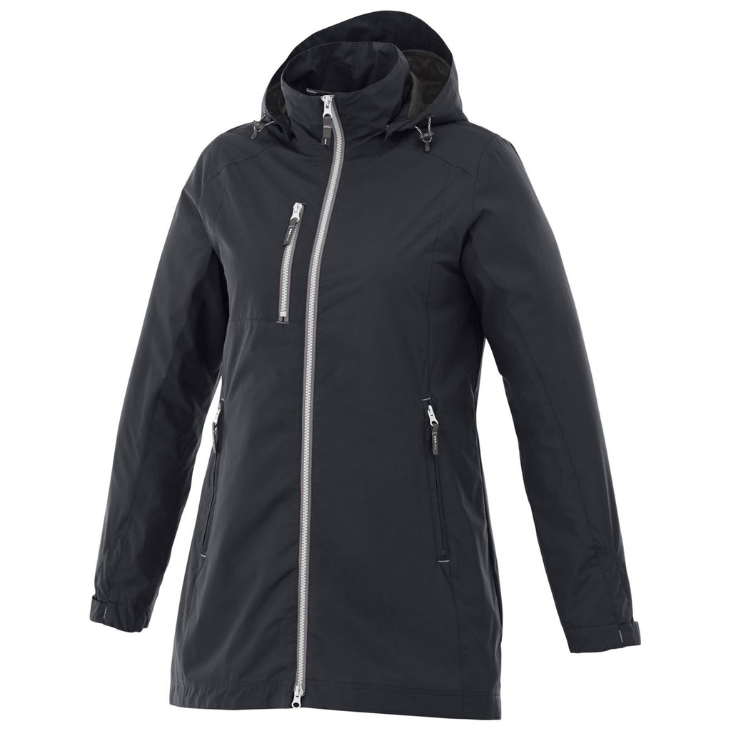 If you are looking for a great present for your next corporate giveaway, the Elevate Women's Navy Ansel Jacket with your company logo on it is the perfect choice. It is waterproof, has breathable coating and water repellent finish so your employees will love it during rainy days. It is designed with a detachable snap off hood. Its additional interior pocket with velcro closure and a secondary mesh stowable pocket are ideal place for your phone, wallet or car keys. Give your employees a gift they will use during their outdoor activities. Whether they are hiking, biking or just walking through the park, they will bring this jacket with them.Corresponding Men's Style: Elevate Men's Navy Ansel Jacket