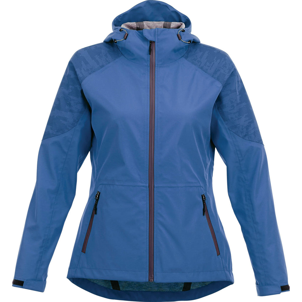 Have your team customers and employees represent your company with a custom logo on this waterproof jacket for women. Whether it's a heavy rainfall or unexpected spring shower, Elevate Women's New Royal Index Softshell Jacket will weather both. Designed to be used as day-in, day-out outerwear all the time with a higher order of quality. Boasts a three-layer construction with a waterproof breathable membrane, water repellent finish and fully seam sealed. You can have this jacket adorned with your company or organization's logo for a uniform, tradeshow attire, corporate gift or business giveaway. The more exposure your logo or name receives, the more likely you are to welcome new customers and see your business thrive.Corresponding Men's Style: Elevate Men's New Royal Index Softshell Jacket