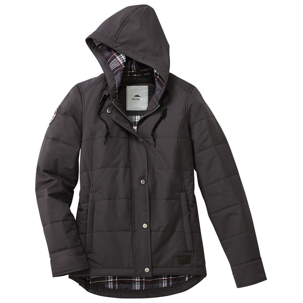 The custom Roots73 Women's Grey Smoke Gravenhurst Jacket offers stylish warmth and will keep you looking and feeling great every time you put this insulated jacket on. Perfect for late fall and early spring, the Gravenhurst jacket comes in two colors and offers many enticing features, including snap-concealing zipper, waterproof breathable membrane, horizontal channel quilting, attached hood, brushed plaid lining, drawstring cord at the hem and more. A custom logo can be embroidered onto the jacket and offers an ideal way to get your corporate name out to the crowd. This jacket will be an exciting gift for employees who can wear it as employee apparel to work during the week and during their free time on the weekends.