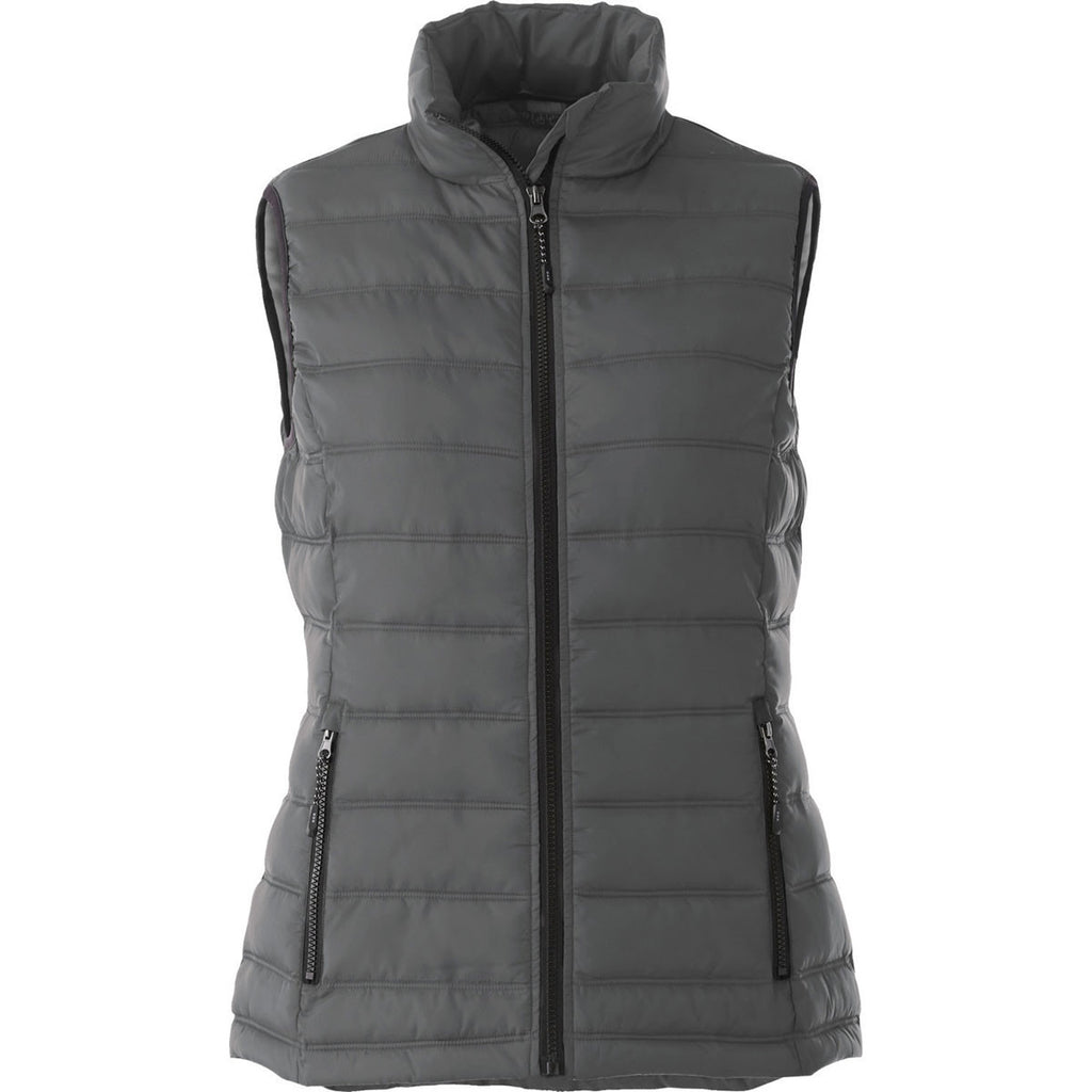 It's time to spruce up your wardrobe. That doesn't mean another shirt, another T-shirt, or anything like that. It means one thing: a vest. And not just any vest. Specifically, the Elevate Women's Steel Grey Mercer Insulated Vest. Thanks to the durability in the fabric, it's a vest that will last you a long time, giving you plenty of repeated use. The Mercer vest will keep you warm while still allowing you to feel comfortable and ready for whatever the day has to throw at you. And because it makes such an attractive layering piece, you can add your custom logo to this vest and instantly add it to your outfit for some extra corporate pride. It also makes a great promotional item for marketing events, gifts, and more.Corresponding Men's Style:Elevate Men's Steel Grey Mercer Insulated Vest