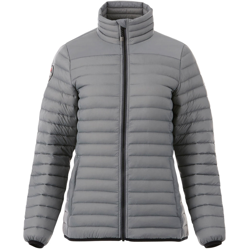 Roots73 Women's Quarry Beechriver Down Jacket offers lightweight warmth mixed with comfort as a way to showcase your custom logo. Perfect for a cold weather adventure or just to wear to and from the office, this partial channel quilted, insulated jacket can be ordered with your corporate embroidery on the left chest or sleeve. Imagine offering this as a corporate gift for those who help make your company great. The water repellant coating adds to the convenience of this down apparel that can easily be stored and carried in the included stuff sack. Order as employee apparel, a holiday gift, or an everyday use.