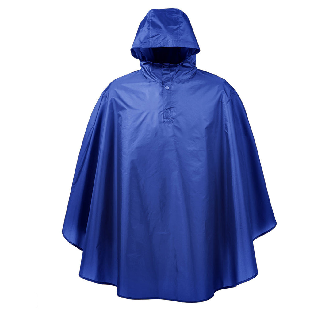 The forecast calls for a chance for rain, so you bring along the Team 365 Men's Sport Royal Stadium Packable Poncho to keep Mother Nature's moisture at bay. Water resistant treatment for each poncho ensures you remain dry whenever the skies open up. Use the shock cord located at the lower hem for enhanced protection against foul weather. The poncho packs neatly into a square for instant access out of a coat pocket or a front backpack compartment. Reflective tape details on the back and shoulders create a stylish appearance. Attach a custom logo to let everyone around you know about your company.Highlights