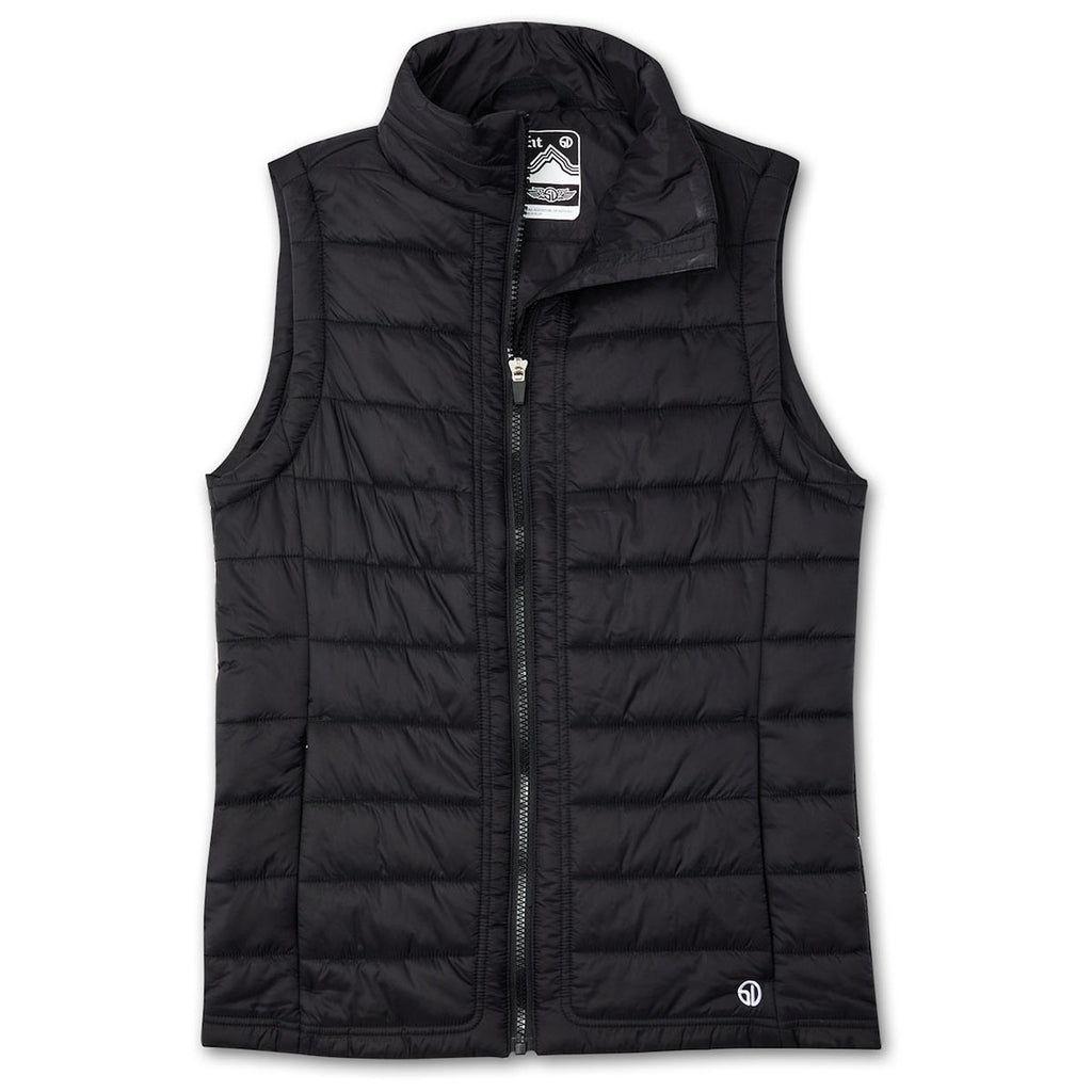 Perfect for corporate layering needs, the Straight Down Women's Black Cloud Vest delivers warmth in a streamlined silhouette. The quilted fabric is wind- and water-resistant, while zip pockets add function. With a flattering fit and athletic design, this vest works well for client gifts, events, or cool-weather branding.Highlights