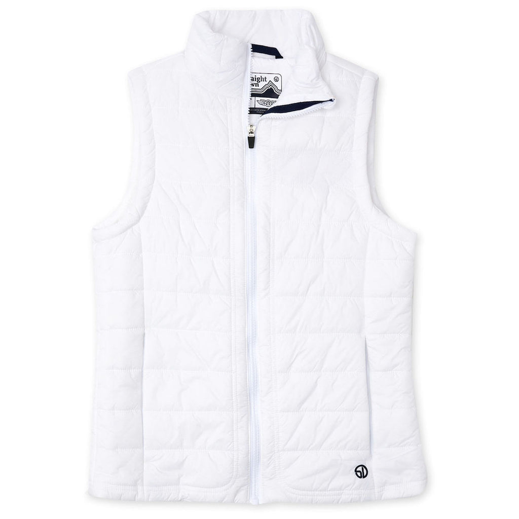 Perfect for corporate layering needs, the Straight Down Women's White Cloud Vest delivers warmth in a streamlined silhouette. The quilted fabric is wind- and water-resistant, while zip pockets add function. With a flattering fit and athletic design, this vest works well for client gifts, events, or cool-weather branding.Highlights