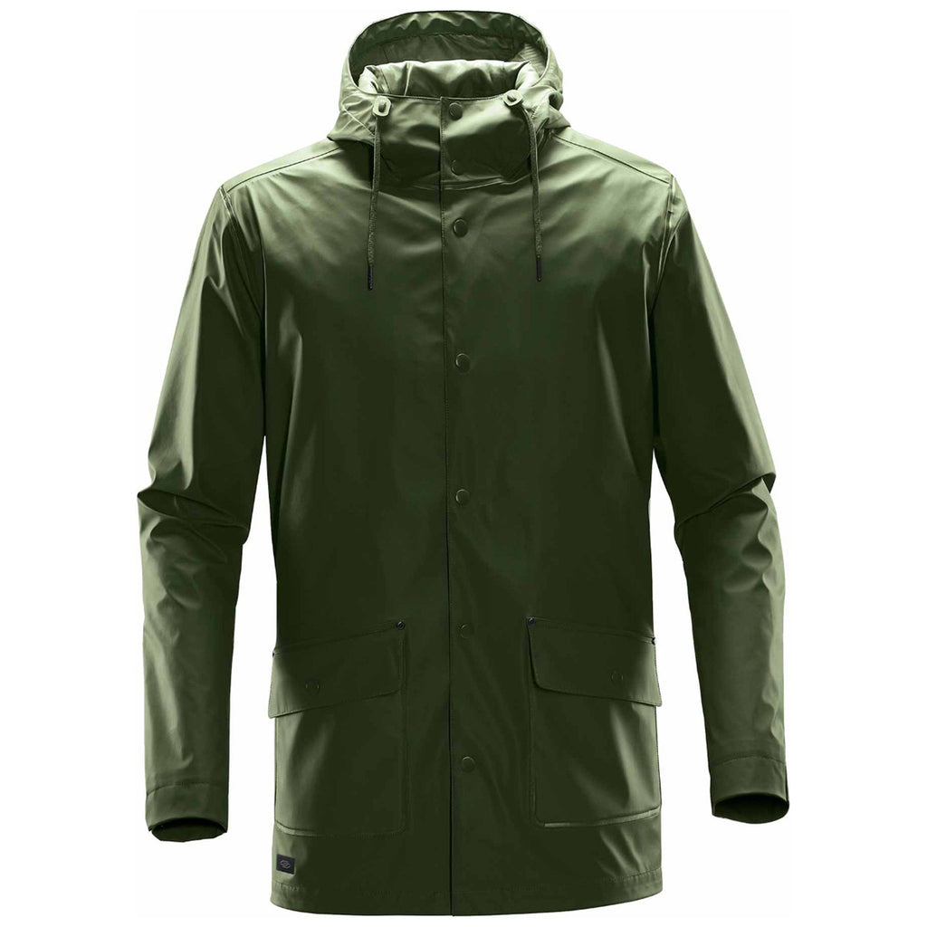 Rain happens, but the custom Stormtech Men's Earth Waterfall Rain Jacket will keep you dry and protected. Add a company logo screen print to the great fitting, mid-length, fully lined waterproof raincoat. The matte finish means this is an easy choice for any environment whether being used as corporate apparel or a day out with the family. Extras include welded waterproof seams, flapped snap closure hand pockets, adjustable snap cuffs, and snap back yoke for easy wear. The self-fabric waist belt means you will look your best, even when the weather is at its worst.Highlights