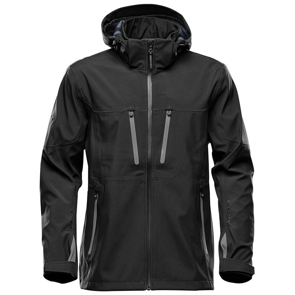 Stormtech Men's Black/Carbon Patrol Softshell with a custom logo allows you to explore with confidence. The versatile, wet weather protection softshell is great for outdoor adventures, whether hiking, camping, or commuting. The detachable hood, dual chest pockets, and dropped back keep you comfortable all day. Place an order today.Highlights