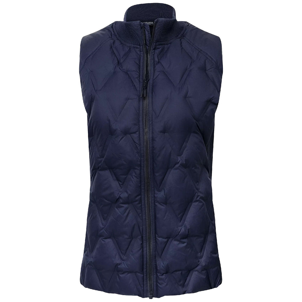 The corporate-ready Levelwear Women's Navy Loft Quilted Vest offers warmth without the bulk. Its down-alternative fill provides lightweight insulation, while the contoured fit flatters all body types. Ideal for layering over polos or under jackets, it's a great custom option for employee gifts or outdoor team functions. Stylish and functional, it works across seasons.This product cannot ship outside of the United States.