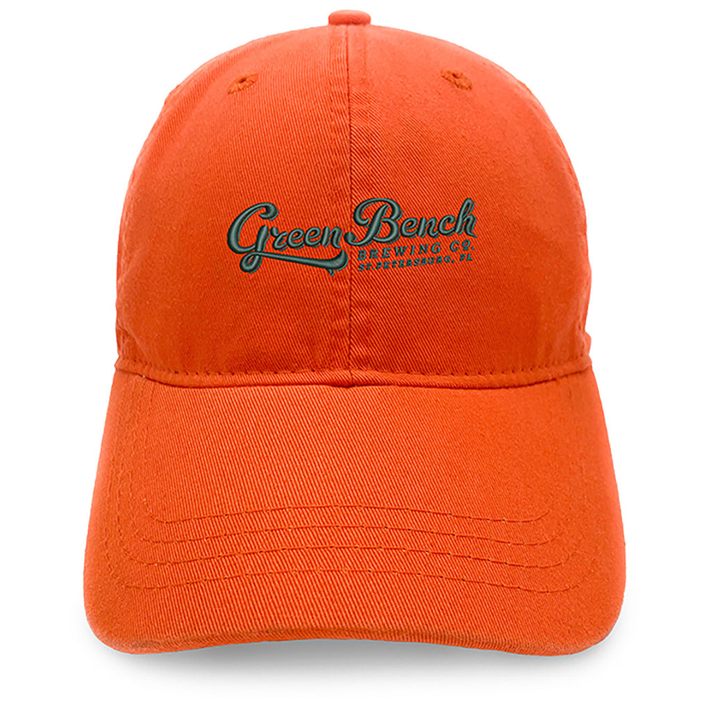 Merrimack Hat Co. Orange Cooper Cap with a custom logo is a creative way to showcase your organization, style, or logoed apparel line. Great for wearing while golfing, playing ball, or just hanging out, this hat has unstructured panels, a curved brim, and a low crown. The self-fabric strap with antique brass buckle closure allows for a one-size-fits-most design.