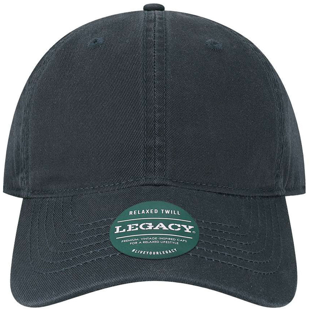 The Legacy Navy Relaxed Twill Dad Hat is a classic accessory with a vintage-inspired sense of style. Available in a range of classic color options, adding your company's custom logo or design to the front of this 6-panel hat will create a stylish promotional accessory that will look great while spreading the word about your brand.Highlights