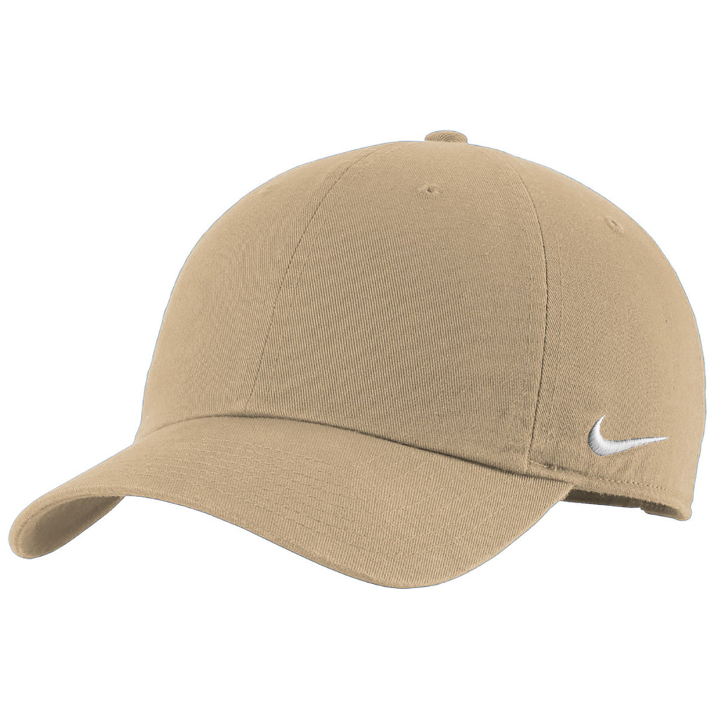Top off your day with a custom Nike Khaki Heritage Cotton Twill Cap. This durable cotton twill, unstructured, mid-profile cap will show off your embroidery with pride. Ideal as part of a team uniform, this cap has interior taping and adjustable self-fabric strap with metal slider for a comfortable fit. Add a company logo to use as part of employee apparel for those who need something to tie their uniform together. A custom logo allows you to show team support, promote your brand, or simply add to your wardrobe.