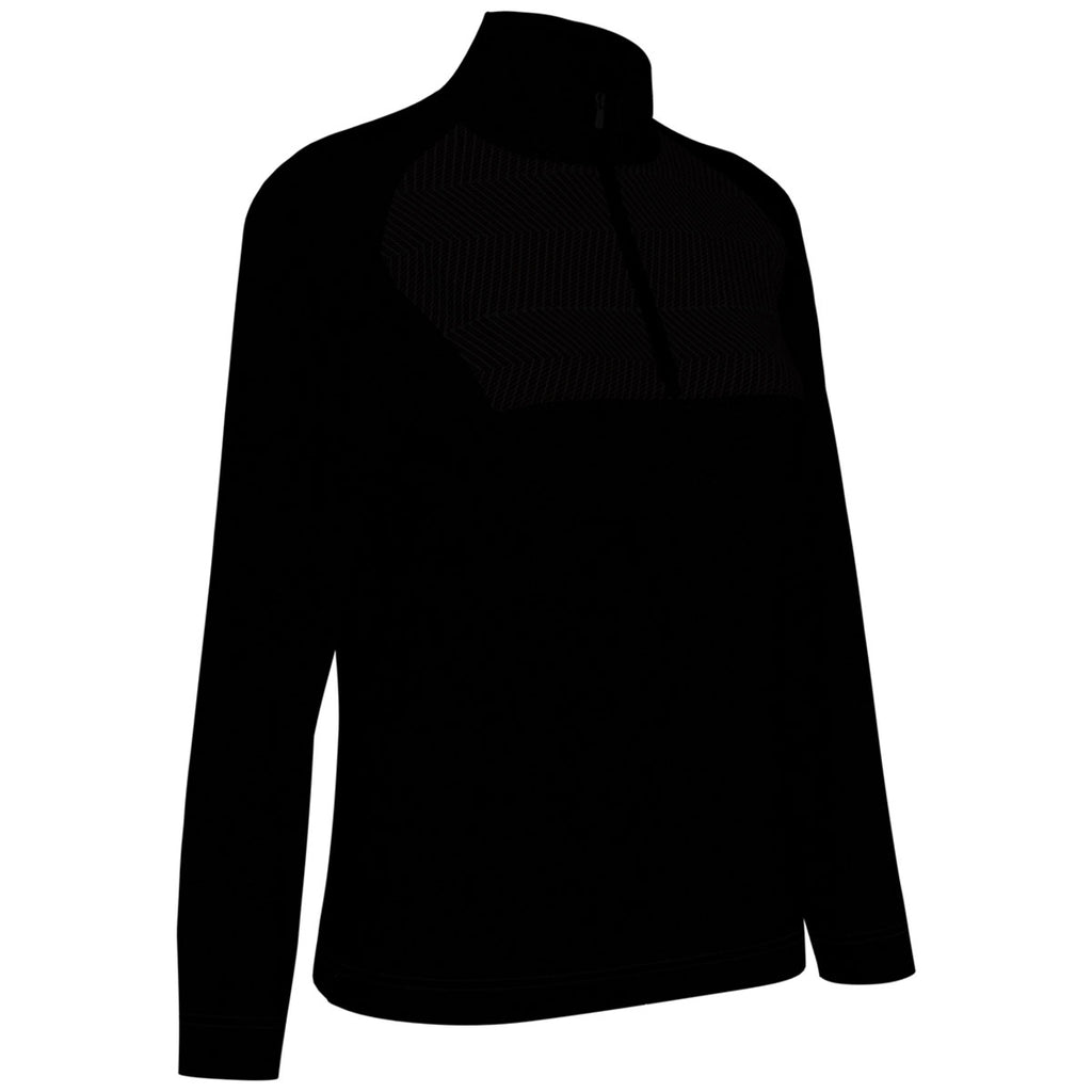 Cozy up in a custom embroidered Perry Ellis Women's Black Heather 1/4 Zip Pullover with a water-repellent finish and UPF 50+ sun protection. The enhanced stretch technology means your range of motion is not hindered, whether you are practicing your putt, shooting free throws, or heading into the office. Place an order today.Corresponding Men's Style: Perry Ellis Men's Black Heather 1/4 Zip Pullover