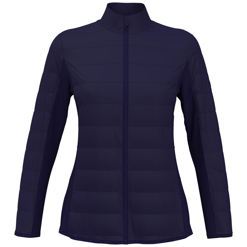 Add a custom logo to the Perry Ellis Women's Peacoat Navy Fulll-Zip Puffer Jacket to create a cooler weather look that is fun to wear. Made of 100% nylon with 50+ UPF technology, you are protected whether hitting the black diamond trails or simply enjoying your day. Fleece panels on the sides and under the arms allow for freedom of movement. Place an order today.Corresponding Men's Style: Perry Ellis Men's Peacoat Navy Full Zip Puffer Jacket