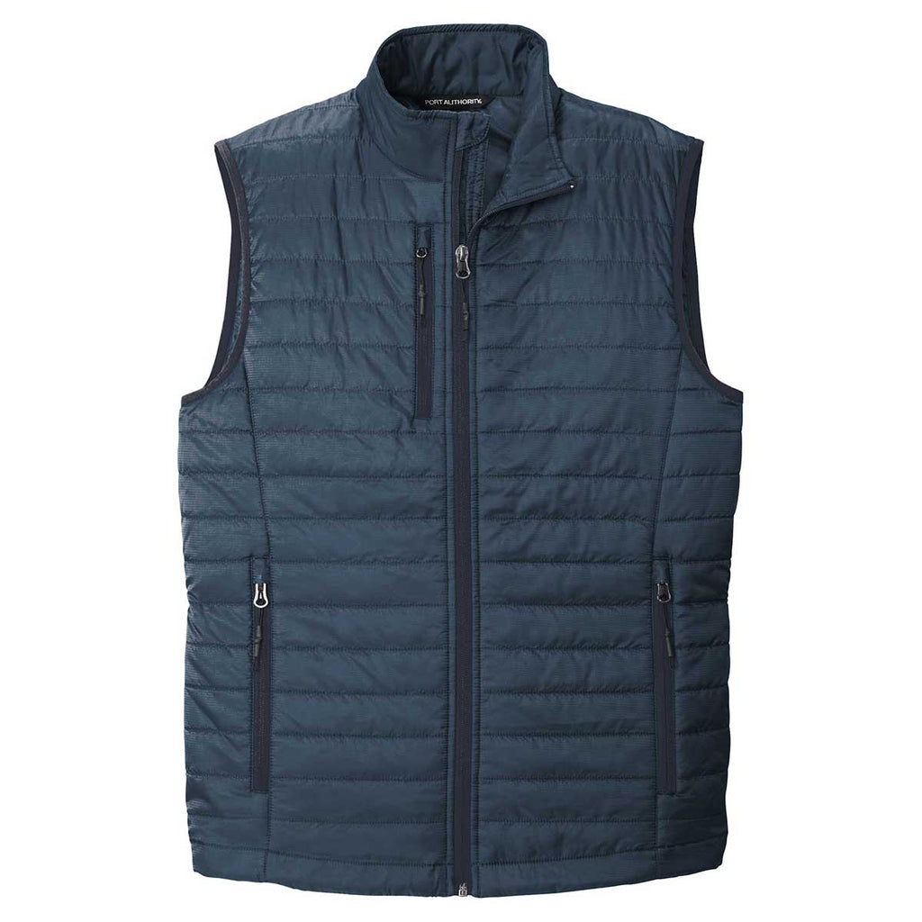When a cold chill tinges the air add a custom Port Authority Men's Regatta Blue/ River Blue Packable Puffy Vest to your wardrobe. Made of 100% polyester on the shell with polyfill insulation, this vest is idea for a morning run or a daily commute. Add an embroidery of your choice to create an addition to company uniforms or a corporate logo to offer as employee gifts. Zippered front pockets, a chest pocket, and a port pocket keep small necessities close at hand whether enjoying time hiking or heading to the office for a long day of meetings. The sleek design will be a welcome addition to nearly every wardrobe.Corresponding Women's Style:Port Authority Women's Regatta Blue/ River Blue Packable Puffy Vest