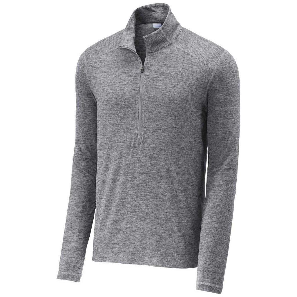 Add embroidery to the Sport-Tek Men's Grey Heather Exchange 1.5 Long Sleeve Half Zip for a look that can go from gym chic to upscale casual. The lightweight poly spandex blend allows for freedom of movement and the open cuffs and hem create a relaxed look. Easily wear lone or as a lightweight layer, a custom logo can be embroidered on to create team gear or promote your organization. Great for jogging or even commuting to work, this 1/2-Zip can do it all. Add a company logo to use as an employee gift that can be worn year round.Corresponding Women's Style: Sport-Tek Women's Grey Heather Exchange 1.5 Long Sleeve Half Zip