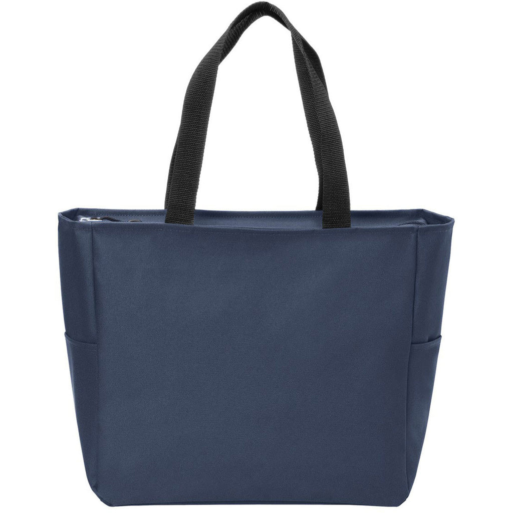 Logoed corporate accessories provide you with a cost effective way to get the word out about your company. However, no other corporate accessory makes more impact on your target market than the impact made by Port Authority Navy Essential Zip Tote. The corporate accessories include over-the-shoulder length web handles for carrying heavy loads through crowded office corridors. Two end pockets store all of your electronic devices. The 600-denier polyester canvas absorbs the worst punishment, as well as prevents rips and tears from prematurely ending the lifespan of the totes. Unlike most totes, Port Authority totes zip up the main compartment to protect your most important business documents.Highlights
